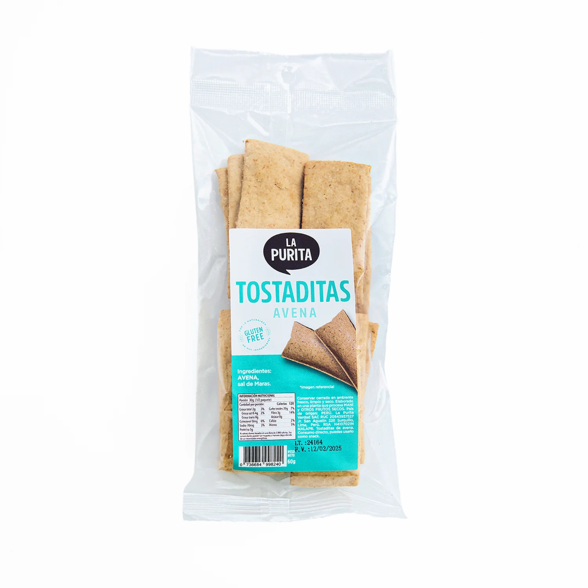Disfruta del sabor y la nutrición de las Tostaditas de Avena Original de La Purita. Elaboradas únicamente con avena y sal de Maras, estas tostaditas son un snack delicioso, saludable y 100% a base de plantas. Sin colorantes, preservantes ni sabores añadidos, son perfectas para compartir en reuniones o para disfrutar en cualquier momento del día. Crujientes y ligeras, las tostaditas de avena ofrecen una alternativa nutritiva y vegana para tus piqueos.
